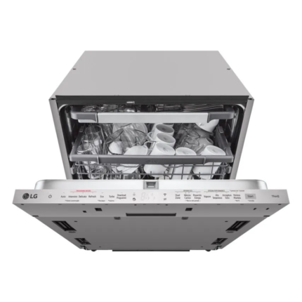 Lavavajillas LG DF365FPS de libre instalación con capacidad para 14 servicios. Este electrodoméstico realiza ciclos automáticos de lavado de vajilla