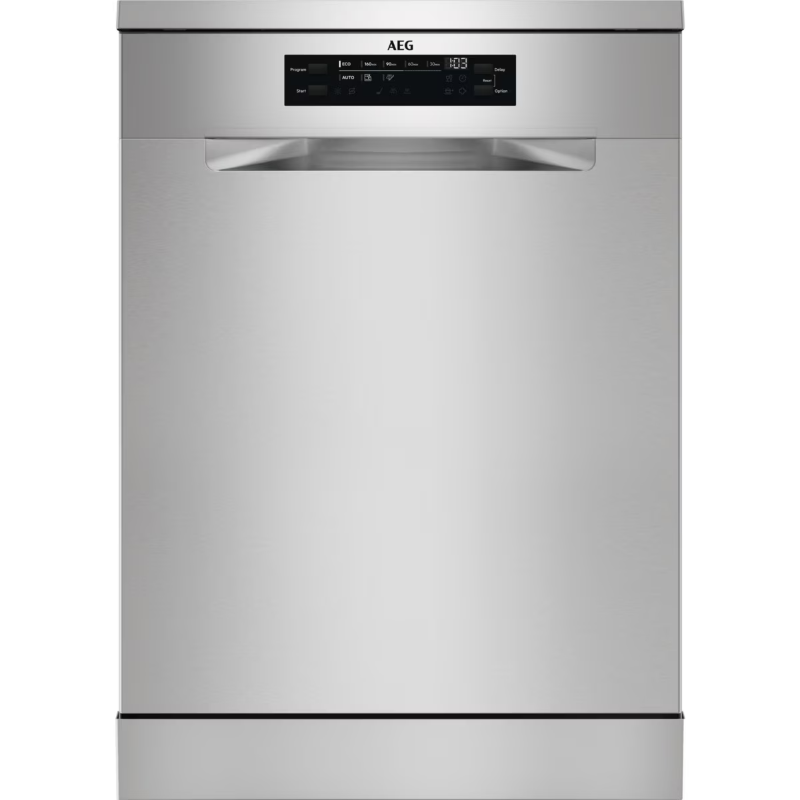 Lavavajillas de libre instalación AEG FFB53627Z con capacidad para 13 cubiertos y ancho de 60 cm. Incorpora sistema AirDry, con apertura automática de la puerta al final del ciclo, y brazo aspersor SatelliteClean. El panel frontal incluye mandos y pantalla para la selección de programas y funciones. Dispone de cesta superior regulable en altura, cesto inferior para platos y utensilios y cesto para cubiertos. Integra inicio diferido y programas de lavado para distintas cargas y niveles de suciedad, además de ciclo de mantenimiento del aparato. Funciona con conexión a red eléctrica y toma de agua, y está destinado al lavado de vajilla, vasos, cubiertos y utensilios compatibles con lavavajillas.